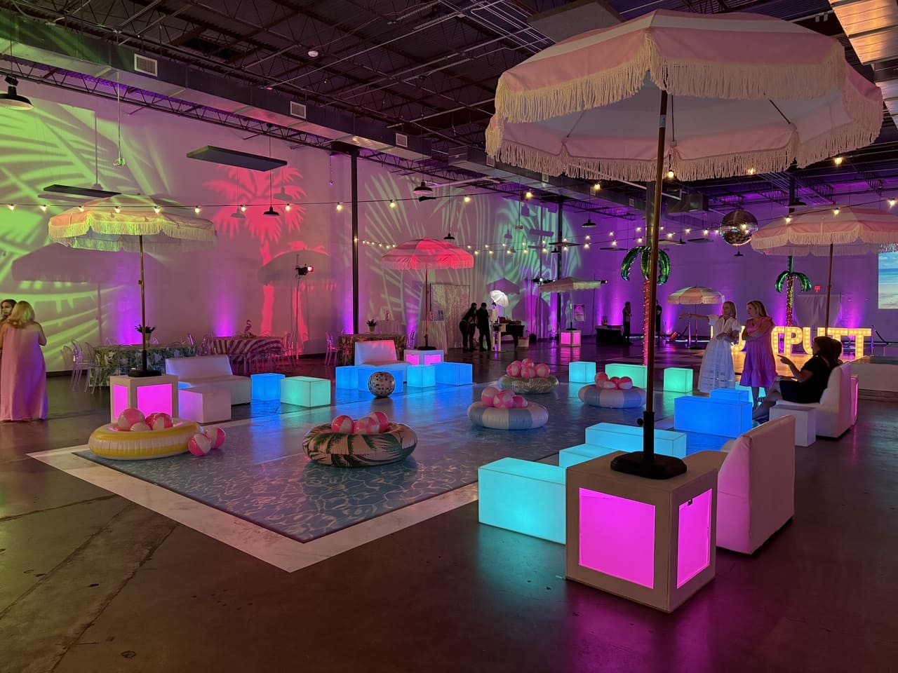 Lighting plays a crucial role in establishing the atmosphere for any event, particularly for a romantic outdoor reception or a cocktail gathering. Our team focuses on meticulous details and creates stunning designs to elevate your event.