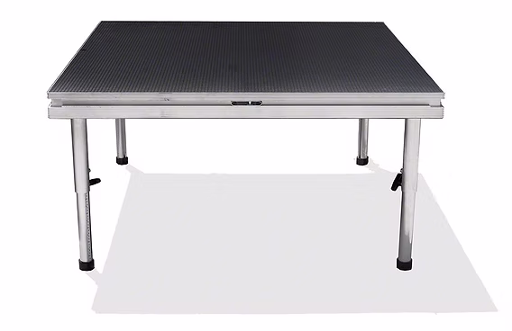 Our stages are available in 4x4ft sections that can be securely connected to create your ideal elevated platform. You can select heights ranging from 16 inches to 24 inches and customize with steps, rails, skirting, or rope stanchions to meet your event requirements.
